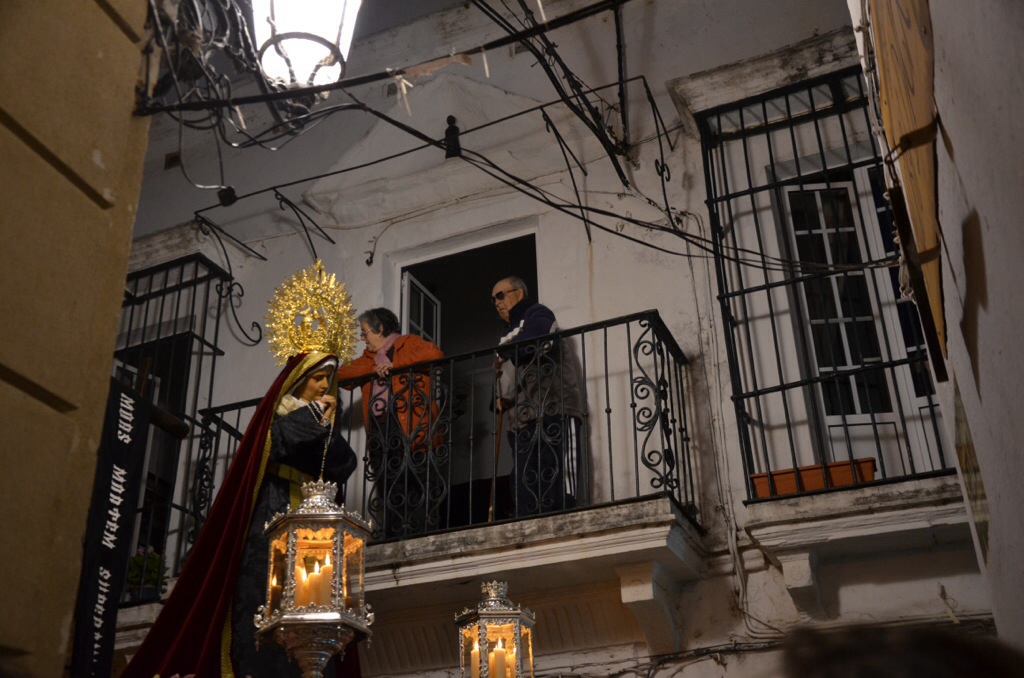 With all the detours during the day, I reached Tarifa very late, and the weather was chilly. The owner of the hotel said bad weather was expected for the following day. I checked into the room, exhausted from the day driving. I wanted to relax a bit, but the neighbors started to have a good time and I left for a walk through the old town. It is a lovely place. Small alleys lead along whitewashed houses. Bars and tiny boutiques were everywhere, and the street lights spread a yellow light. I ran into a procession, the first of this kind for me. A wooden Maria was carried through town, followed by a band, a crowd and a cloud of frankincense. The tapas and red wine were delicious, I found a bar on a small square where I had been already some years ago. That was it for this first day, tomorrow I’ll have to catch the ferry in the morning.