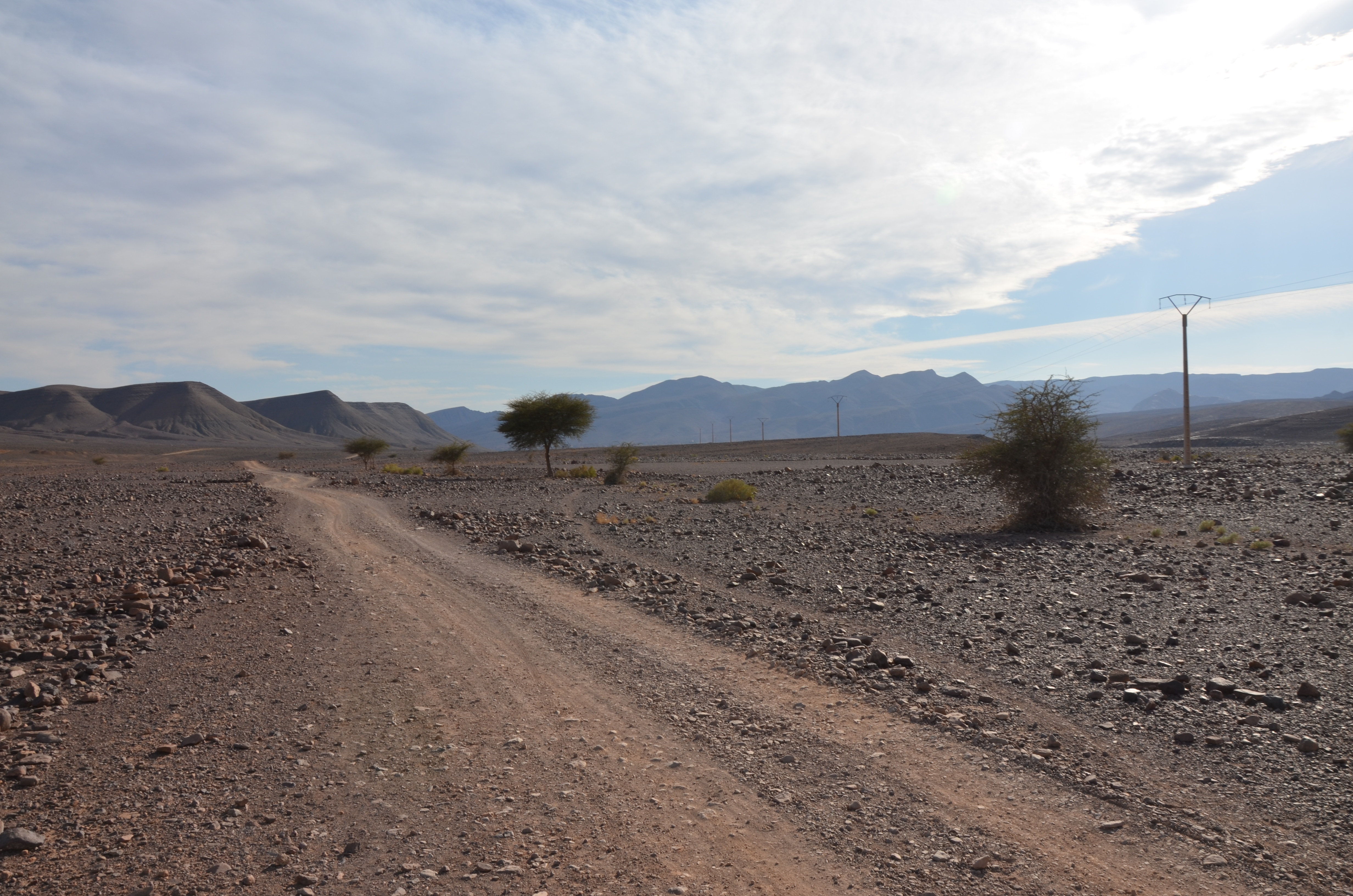 As I reached the tarred road again I had to decide which side to go. I choose to drive on the southern side, through Zagora. Bad decision number two of the day. Half an hour later, on what the map showed as a major road, the tar disappeared: construction site ahead! I thought I’d give it a try, maybe after a few km the road was finished again. Half an hour later, after risking a couple of times to drift off the stone track, I gave up and turned around. On the way back three spanish Jeeps crossed my way, the last one almost ramming me. at 19:00 I reached the place where I had gotten back on the tar road. Ironically, in the last daylight the tar got pretty bad on the stretch from here on back to Tazenakht. The next major town with the chance of a decent hotel was Ouarzazate. I had crossed it on my last trip and remembered it to be nothing spectacular, and full of tourists. But right now it was my only chance, and it was late and dark. I raced through the mountains towards it, to some extent it reminded me of the night race through the mountains north of Tehran, also that one after a day lost in the mountains. As I drove past the film studios at the entrance of Ouarzazate I took a deep breath, I made it. Tomorrow I’ll have to catch up and make up for the km lost today. This day felt like I hit one of those fields in Monopoly where you have to take a card, and mine today read “Construction work ahead, move back several spaces and do not cross Start!”