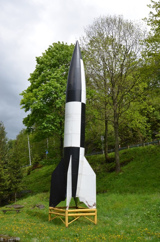 From the castle I kept driving southeast through a lovely forest road when suddenly a V2 rocket stood at the side of the road. I stopped, and found a museum of a tunnel system built during WWII, here in the middle of this beautiful mountain range.