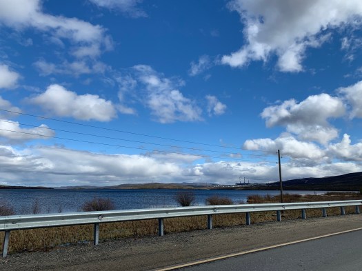 After a while nature started to look a little less destroyed, although the lakes seemed bigger and several were created by dams. On the horizon a mountain range with snow appeared. The closer I got, the more it became clear that the next destruction of nature was approaching. More mines, chimneys, crumbling buildings. Only the road was decent.
