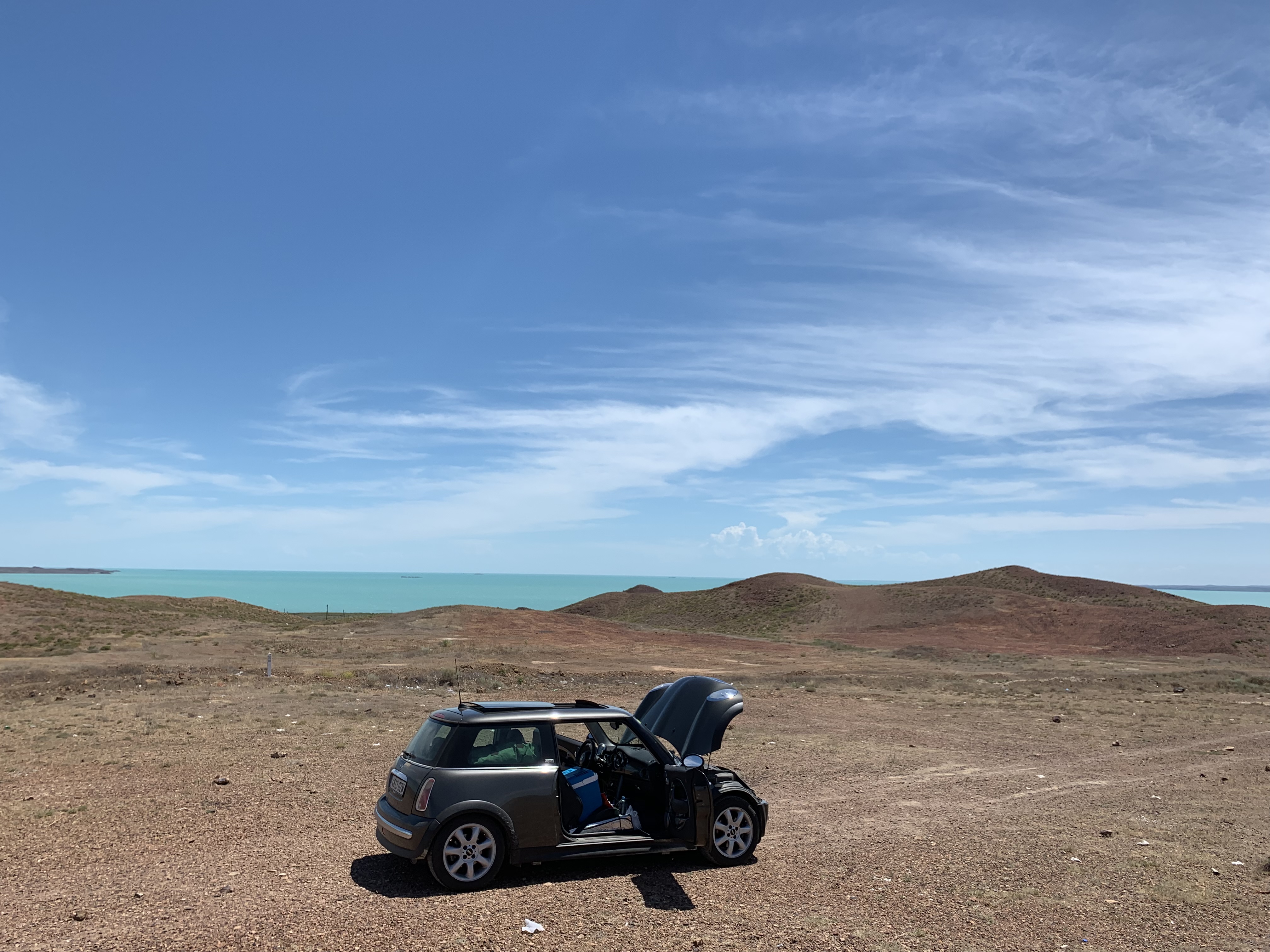 In between all this I drove, a lot. 10h the first day and 13 long hours on the second one. The weather was hot, very hot. On day two it topped at 35C around the bright turquoise Balkhash lake that took me four hours to drive around. It got so hot at some point a fata morgana of a lake appeared over a salt piece of desert. The 222km of road nightmare from the lake to almost Almaty were an ordeal. The poor Mini got a beating unlike any other day on this journey so far. And a very serious dust cover.