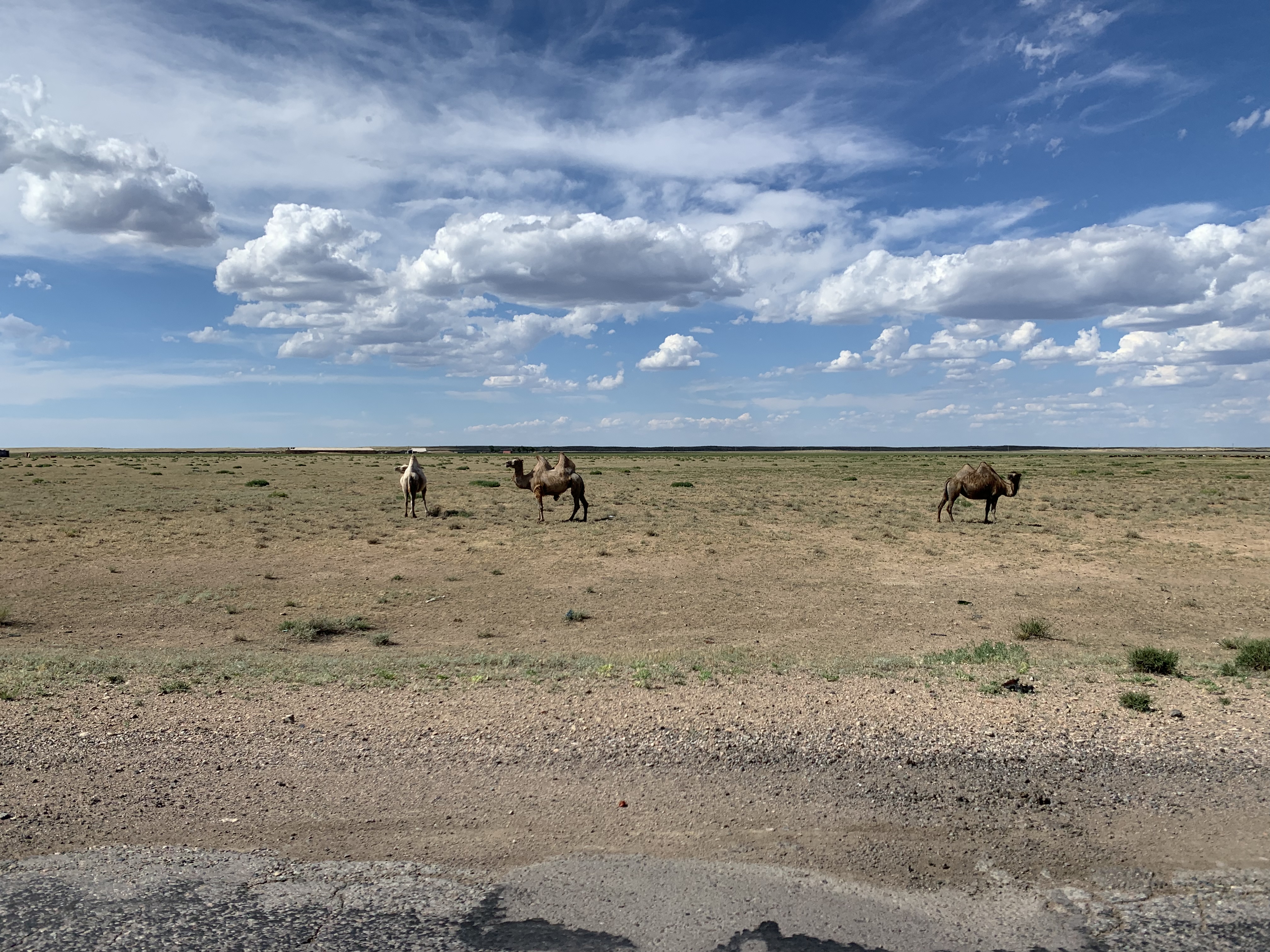 Very alive around here were also the police. They strictly stick to those parts of the road that are decent. When there’s no police around you know the road will get very bad soon. The motorway from Nur-Sultan to Astana was being built by the Chinese in full swing. In the meantime everybody has to live with the roads that are being replaced, or the mud dams around the construction site. It was dusty, hot, diesel fumes filled the air. Hard to stop, I just kept driving and driving. Until Balkhash town and a northern piece of the lake the road was not too bad, mostly tarred. I got stopped 3 times by the police. It was always the same procedure. They wanted the passport, sometimes also the driving license, maybe the car documents. Then they tried to sell me I broke the law, that I did or did not. They put spontaneous 50km/h signs on good roads in the few places you can actually drive a bit faster (aka 100-120 km/h if you feel lucky), and then catch you with the speedometer. But they even stopped me when I started to drive 50 in the 50 zone. Different than 6 years ago they now all had Google translate, so they could “talk” to me. But fortunately Google translates their Russian pretty bad, or they don’t speak well, so most of the time “I don’t understand.” Usually just keeping talking exhausted them before they let me go. At the last case, they asked me for insurance, as there was nothing else to catch me with. I proudly showed them the insurance doc I had bought at the border. They invited me to sit in their car. I refused. Then I spoke into their phone’s Google translate “What else do you want? I have all documents in order, committed no infraction. I have to go to Almaty today and the road is long. Leave me alone and give me back my documents now! I need to leave.” The policeman looked at me, evidently surprised, handed me back my documents and said “Welcome to Kazakhstan.” I shook hands, and left. I almost got stopped two more times. Once at the entrance of Balkhash. But the Police were stopping a lot of cars at the town entrance and when they saw my foreign number plate they just waved for me to drive on. Too much hassle, I guessed. The second one was a police car coming the other way. They were driving so fast they couldn’t turn around in the traffic on the road, as I saw in my rear mirror. So I just drove on and lost them. At lunch time I passed two police cars in front of cafés after having passed two 50 zones without controls. Everybody needs a break I guessed.