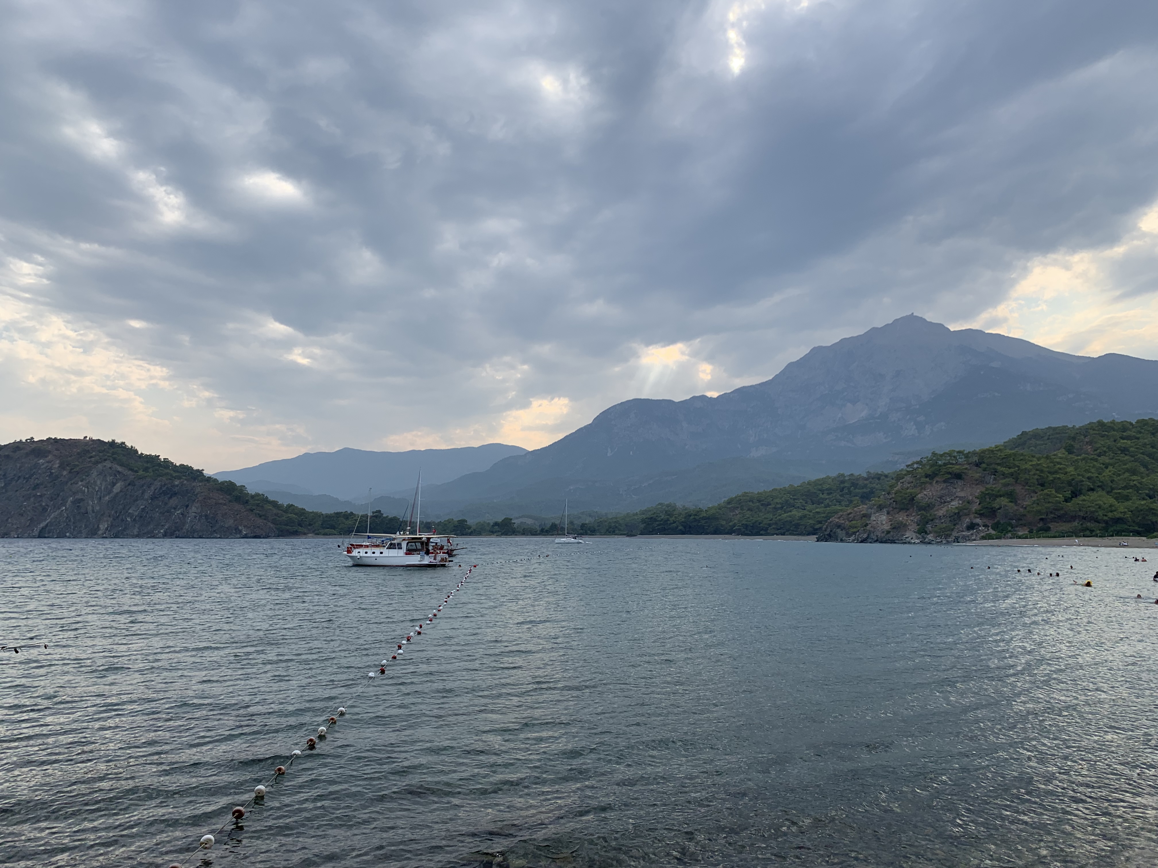 I reached the ruins of Phaselis at about 17:30. Happy to stop after a long day driving, I found a parking spot in a pine forest. The moment I opened the door, a wall of heat and humidity hit me. But what hit a lot harder, was to find the archeological site of this ancient seaside city was used as a beach resort. Tourists strolled around the ruins, mostly taking selfies. And the former ports were now used as beaches to picnic with the family. I had hoped to find a quieter place. Back on the road, I needed to find a place for the night. Close to Kas was a hotel in a small bay with a beach and a restaurant. Deal! I reached Kas as the sun was disappearing on the horizon. I followed Google maps through hills and valleys until the road got so bad I had to stop. Checking again, it turned out the place was only to be reached by boat! I had to first get out of the rock track and then find another alternative. Luckily I ran into a very basic camping site close to a beach. During the day that place must have been full of people, the plastic deck chairs lined up in several neat rows along the entire beach front. But in the darkness I didn’t see any of that. When the raki was on the table, the fish ordered and the stars shining on the deep blue sky, a feeling of vacation overcame me. And it felt good, very needed. I had passed through so many wonderful places where I’d have loved to spend some days and relax, take a bath in a river or lake or sea, have some fresh local food served in a decent setting like here on this beach, that was nothing special. But only here in Turkey this way of enjoying of life came back again.