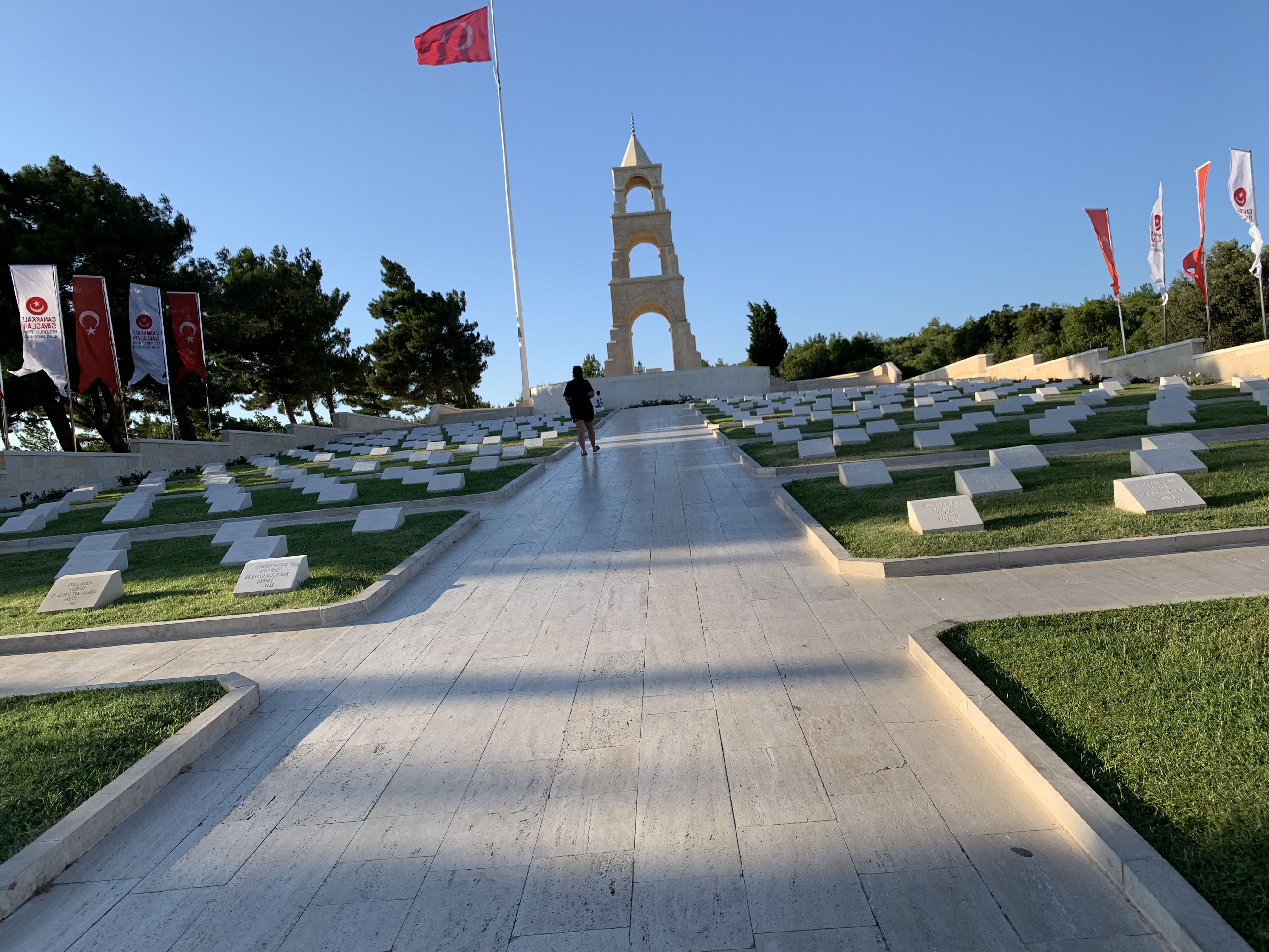 In the past three months I had crossed the borders of Europe and Asia repeatedly. In the Urals and the Caucasus I criss-crossed from one side to the other. From Çanakkale to the Gallipoli peninsula it was a short 30 mins crossing over the Dardanelles on the car ferry, avoiding the big cargo ships that pass this waterway constantly in both directions. On the Asian side several monuments commemorated the war that raged here a bit over a century ago. Big guns on display, hero monuments, and the oversized images of Mustafa Kemal Pasha, the “father of the Turks”. If this was Central Asia, I’d probably have dropped a comment about “Soviet style glorification of the war and their dictator.” Atatürk was no dictator, but the omnipresent veneration throughout the country – on buildings and cars, in shops and restaurants and hotels and homes, and of course public buildings, the many statues – was remarkable. And felt awkward from a European perspective, where glorification if leaders recalls horrors of the past. From the ferry I could see the fortifications on both sides of the waterway. Once on the European side, I drove for about two hours over the Gallipoli peninsula. From Eceabat the road leads through a valley to the West, where a war museum greeted me on the other end with a plane and guns on display in front of it. From there a small road led up the hills, over several ridges. There were cemeteries everywhere, Turkish and British/Australian/New Zealand, monuments, statues, and trenches. Every few meters a sign explained what happened on that particular stretch of road in 1915-1916, how many soldiers died, how brutal the action was at that point. Left and right of the road trenches were still visible, some tunnels too, and as I was standing reading in some cases I stood at a point where 104 years ago the killing must have reached extreme levels of brutality. If I ever had made it to where I was standing now, at the time I would have gotten shot in seconds. Now crickets chirped, a slow breeze helped with the heat, and Turkish tourists explored the area with their kids. The cemeteries told the same story I had seen so often during this trip, of boys in their early twenties losing their life before it had even really started. White stones in endless rows, on them names, ranks, dates the Turks added the hometown too. And the majority of the dead could not be identified. The same thoughts I had had at my grandfather’s cemetery in Alsace came up – what does it take to not be able to identify a dead soldier? I had reached Europe, and the war scares had appeared immediately again. It’s not that on the Asian side nobody got killed in the past. The stories of the silk road cities were full of atrocities, slaughter and barbarism. But no cemeteries, no remembering happened this visibly there. While in Europe it was everywhere.