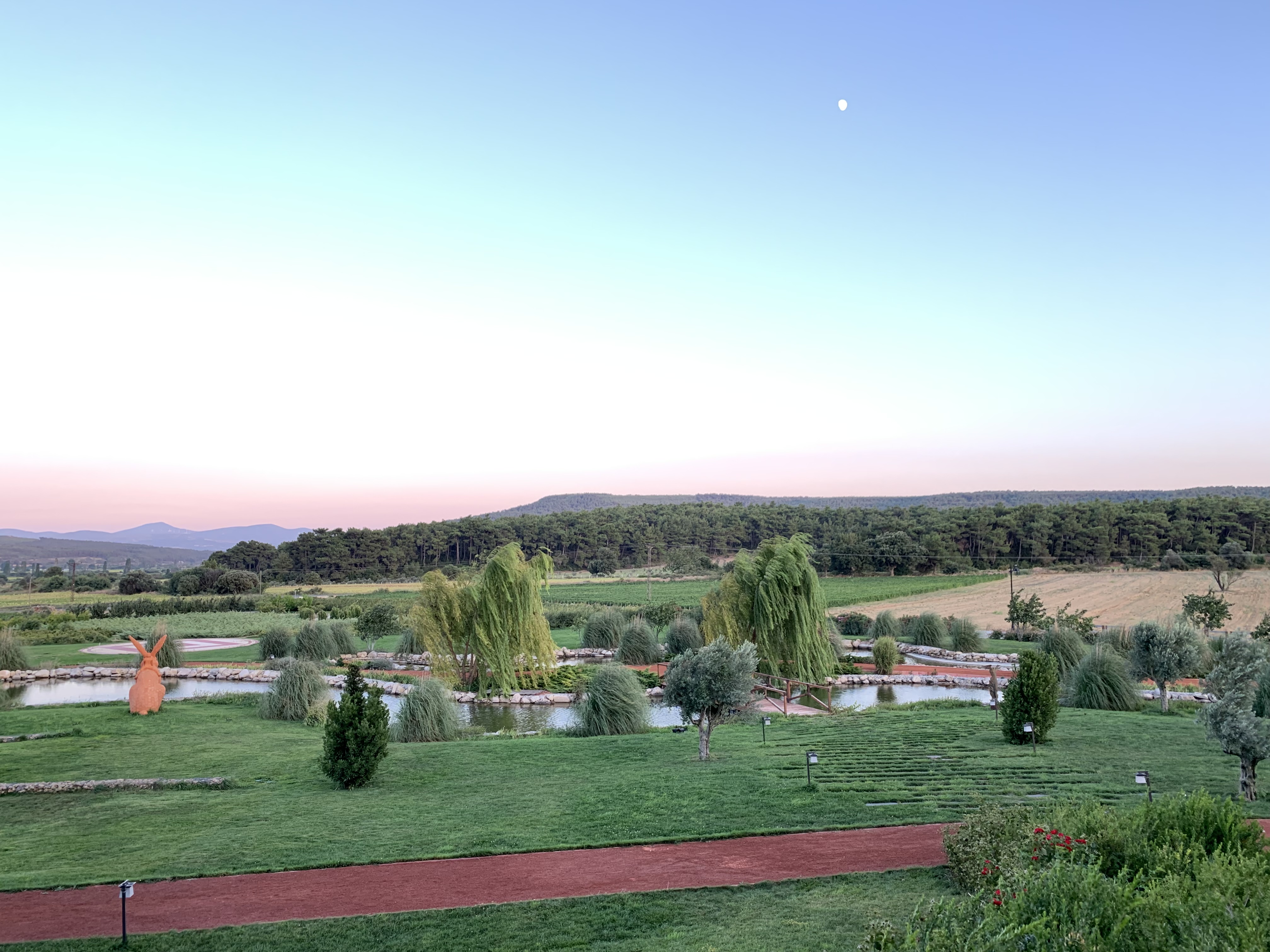 The road left the trenches and cemeteries towards the center of the peninsula. About half an hour later the Porta Caeli vineyard appeared on the same hilly landscape. Dense vineyards of different varietals of grapes, in the middle of it the winery and hotel. My stop for the night and next morning. Since Troy, a strong wind kept following me wherever I went. And also here, on a terrace overlooking the vineyard in the last light of the day, a strong breeze refreshed the evening very pleasantly.